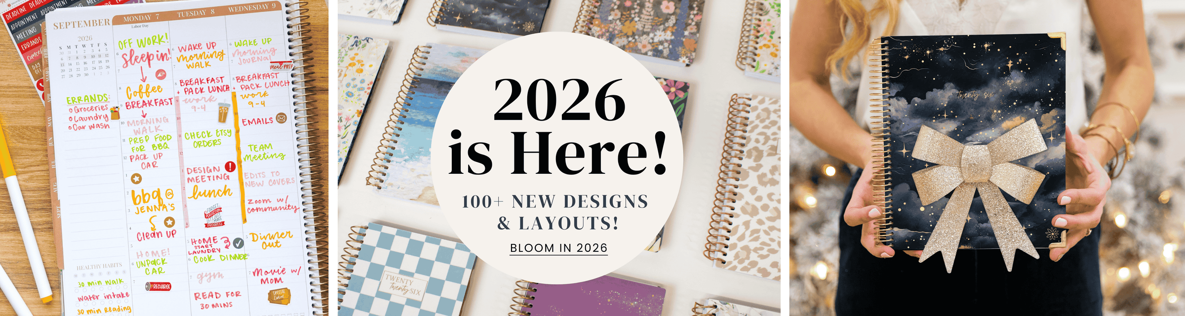 At bloom, we’re a small, female-led team who gets how overwhelming life can feel. That’s why we create thoughtful planning tools to help you calm the chaos, stay organized, and continuously grow into your best self—one day at a time.