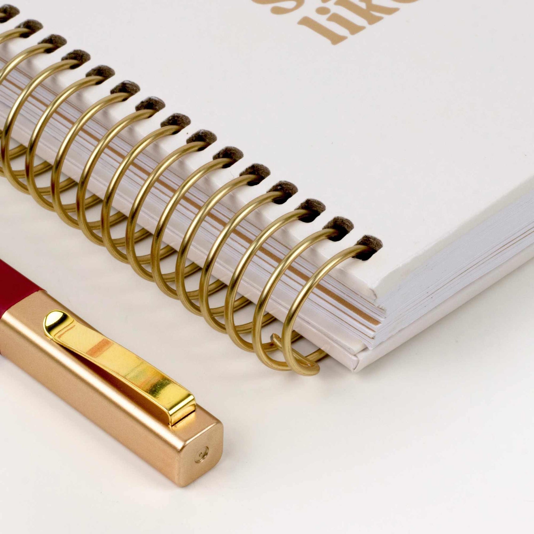 Special features of the vision planners including back pocket, free stickers, magnetic bookmark, thick paper, gold metal planner corners and gold binding.