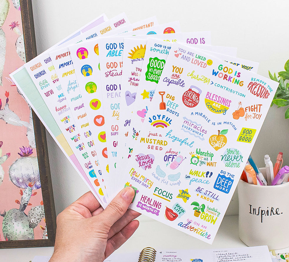 I've been using Bloom planners for many years. I treat myself to a packet of stickers as well. I usually run out of year before I run out of stickers. But these faith stickers may be all used by October! I like the empowerment stickers but many just aren't me. This new line aligns (get it?) with my values, beliefs, and self-talk. Thanks!