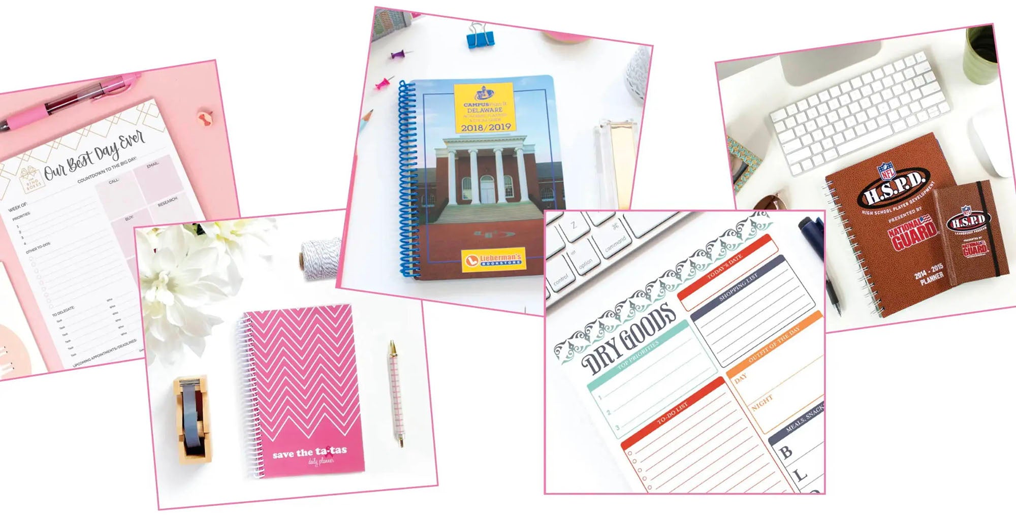 school planners with your custom content.