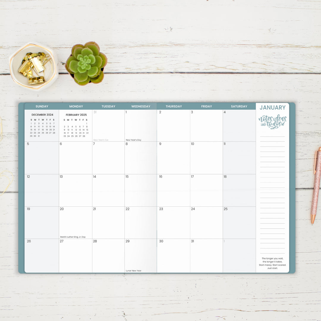 Don't need the extra bulk of weekly views? bloom's Monthly Planners are the perfect choice! These spacious 9” x 12” planners run from January to December. Each month gets its own spacious spread, with plenty of room to see all appointments, events, and to-dos. These planners feature an extra thick premium paper, lay flat sewn binding and a soft, flexible cover with a clear plastic sleeve that doubles as front and back cover pockets! While minimal, these planners still have inspiring life coach pages designed to help you be your best self.